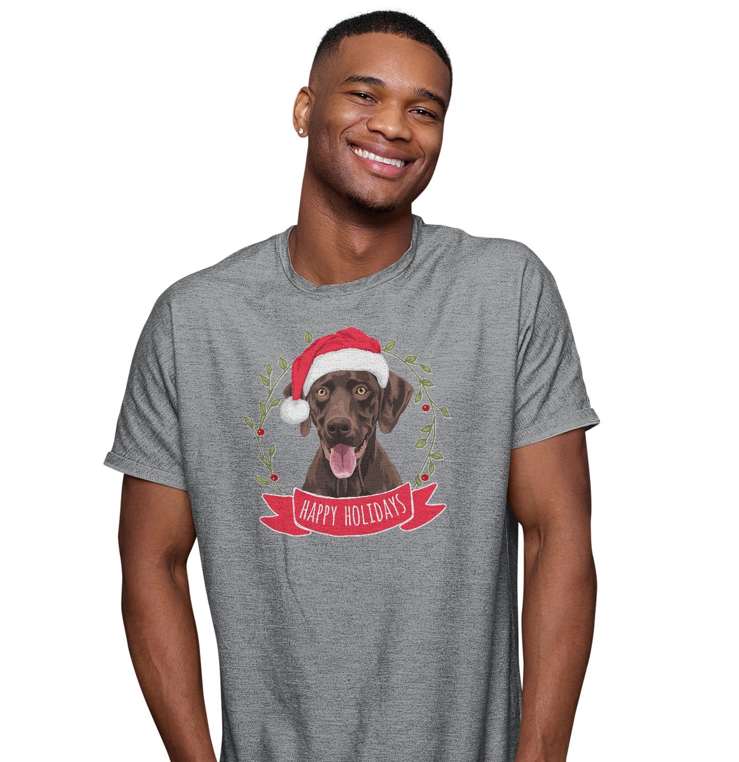 Happy Holidays Chocolate Lab - Adult Unisex T-Shirt