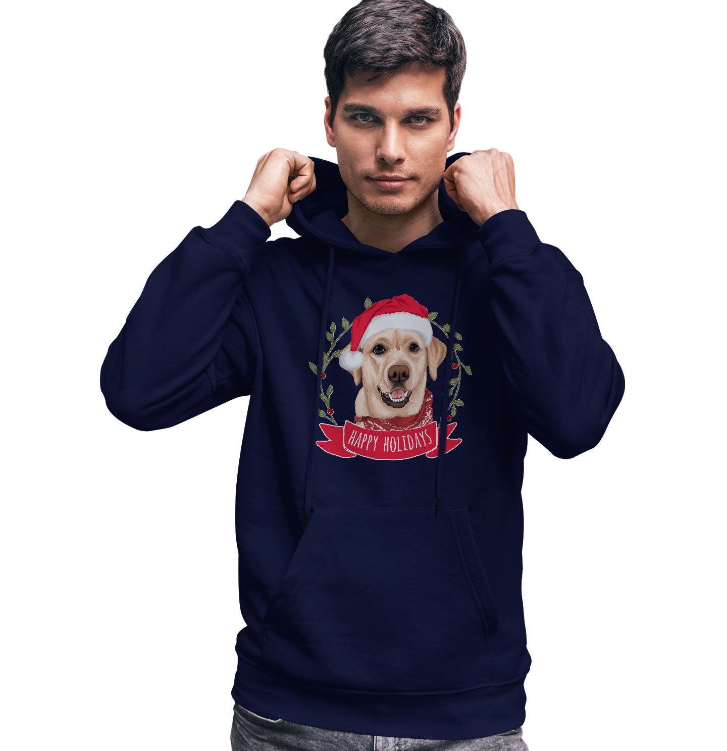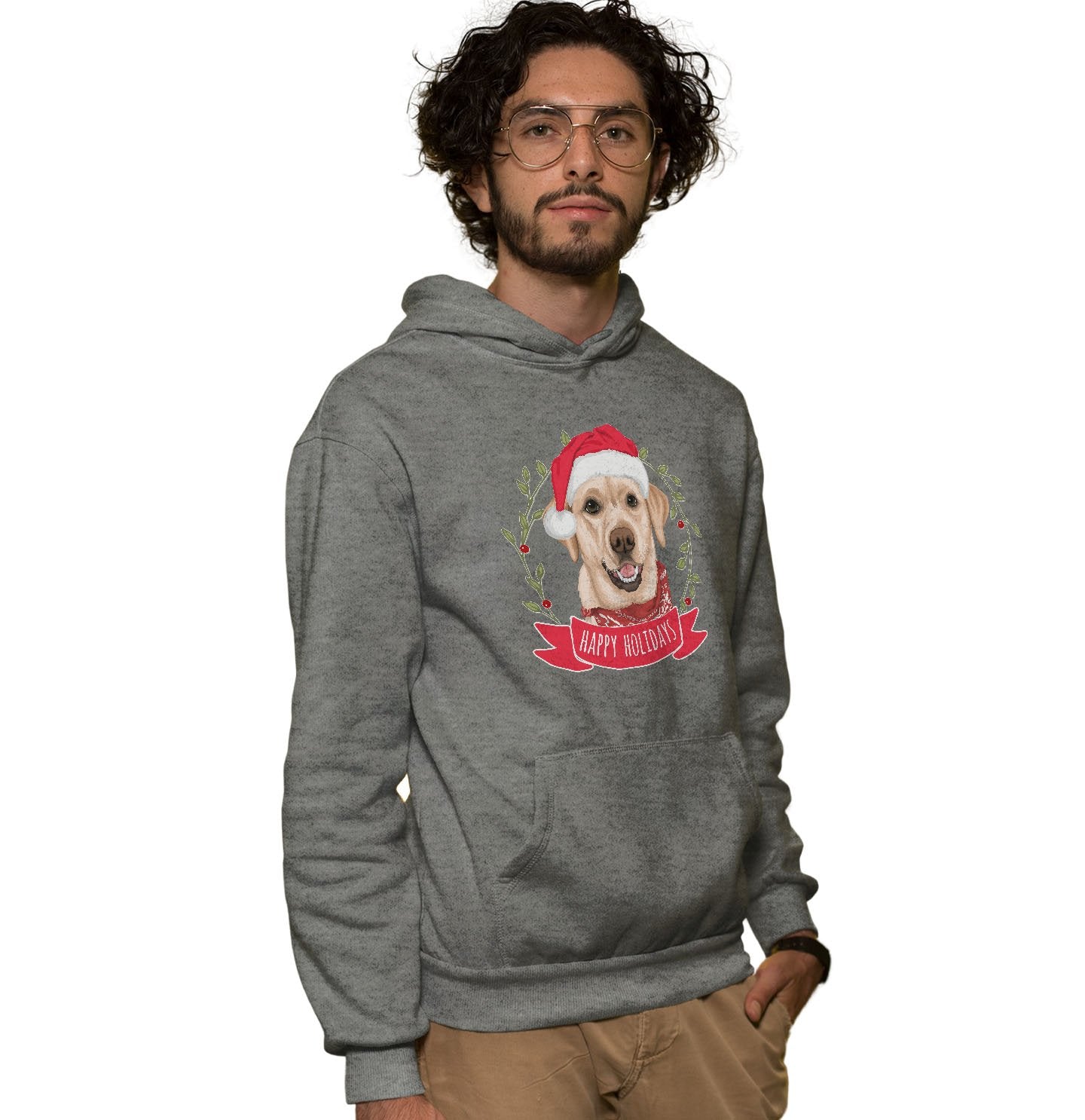 Happy Holidays Yellow Lab - Adult Unisex Hoodie Sweatshirt