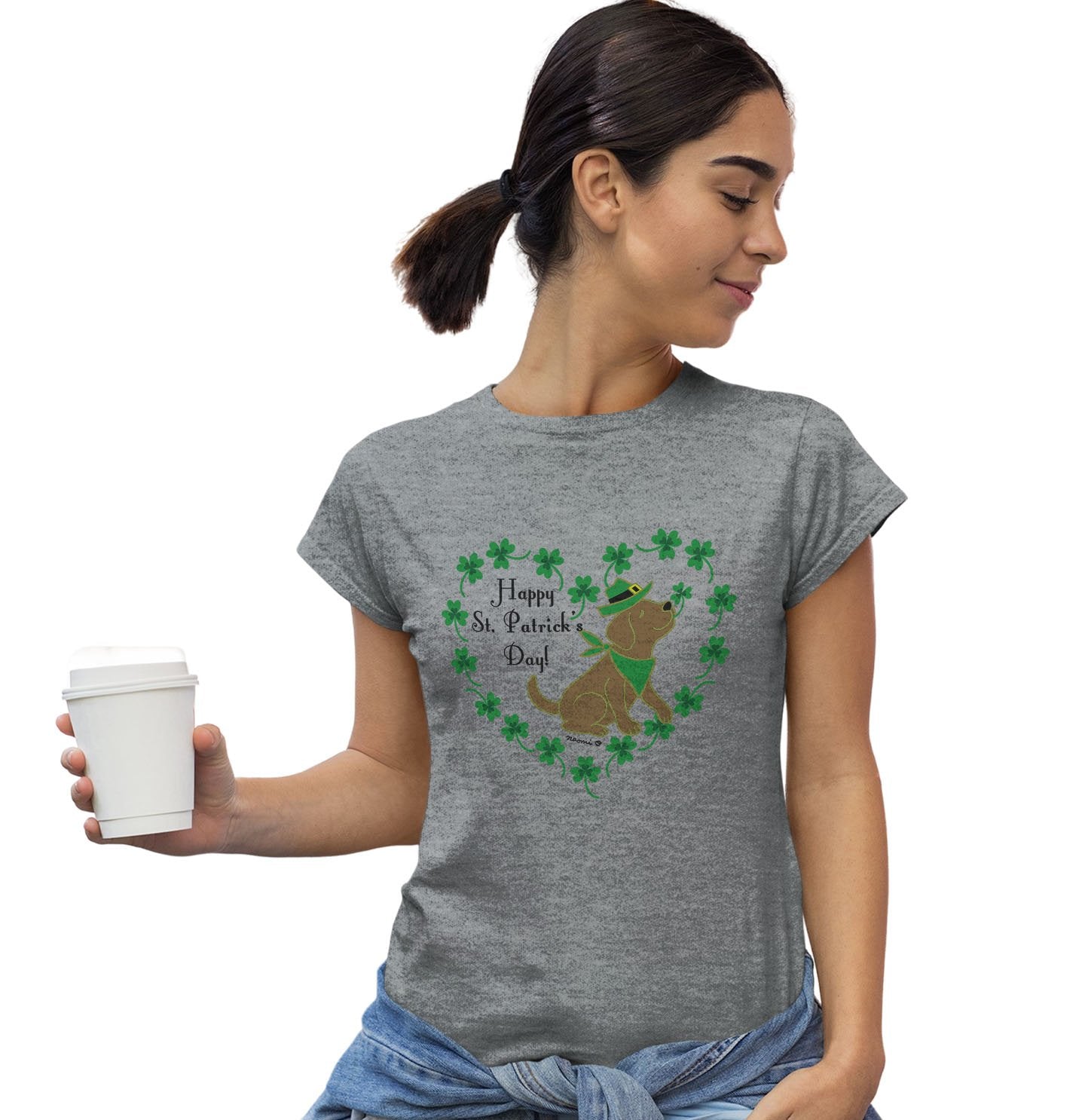 St. Patrick's Day Clover Heart Chocolate Lab - Women's Fitted T-Shirt