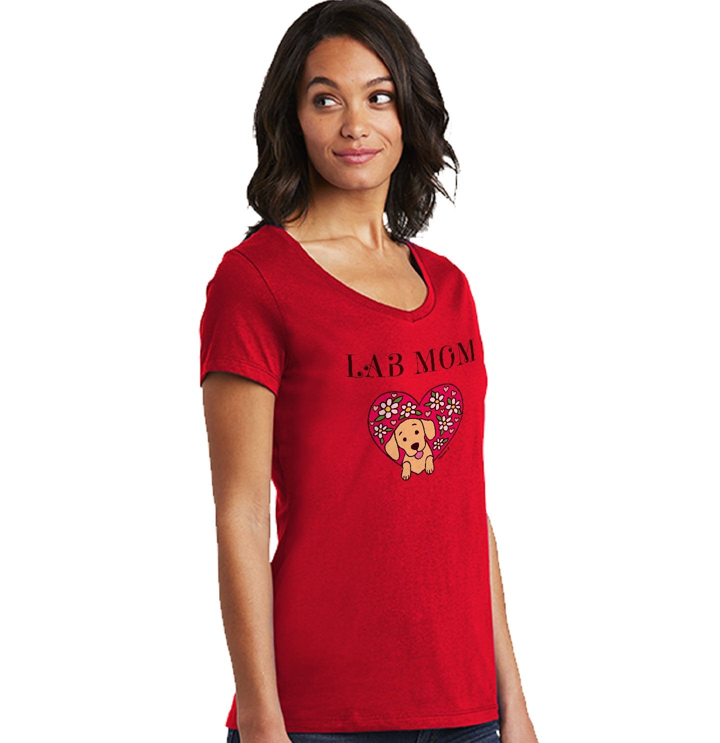 Flower Heart Yellow Lab Mom - Women's V-Neck T-Shirt