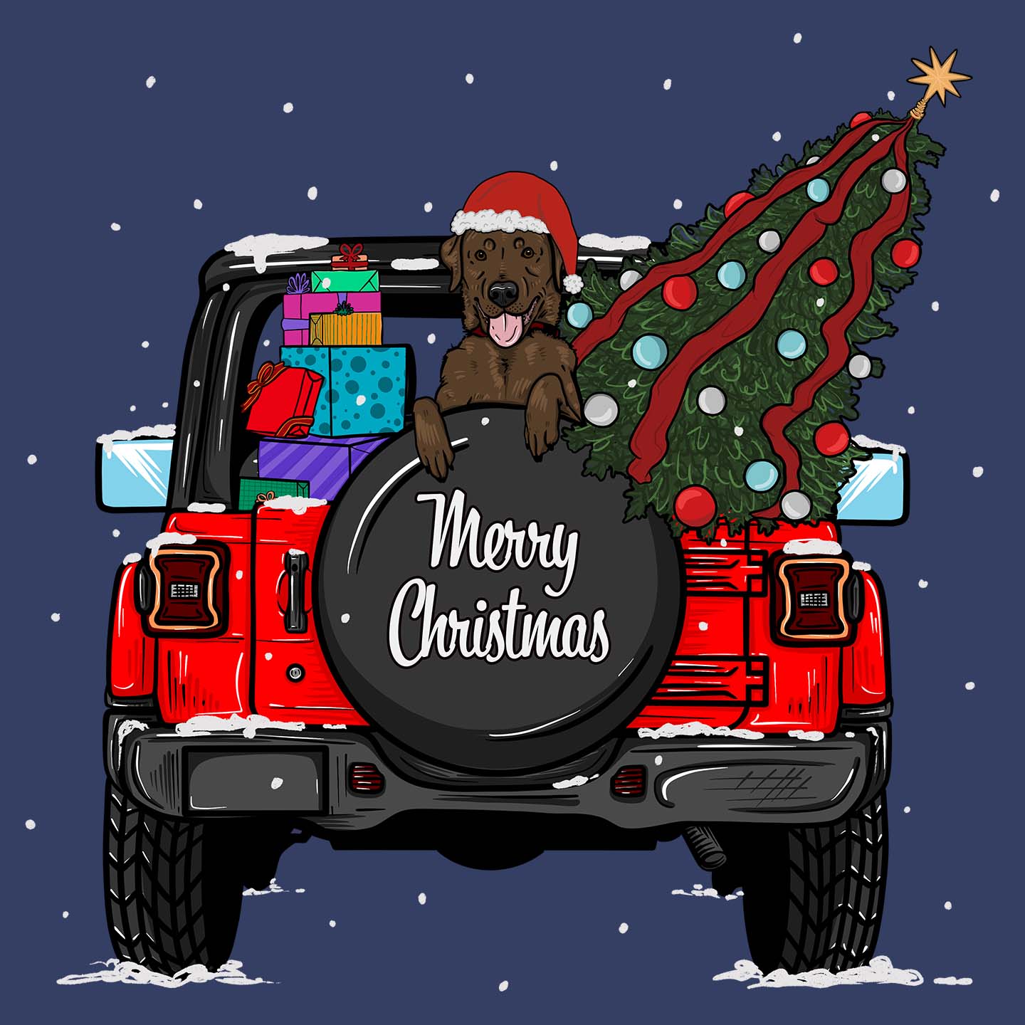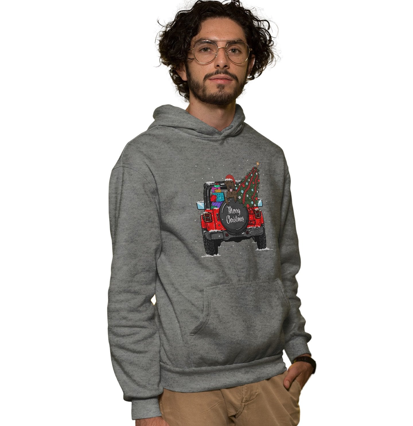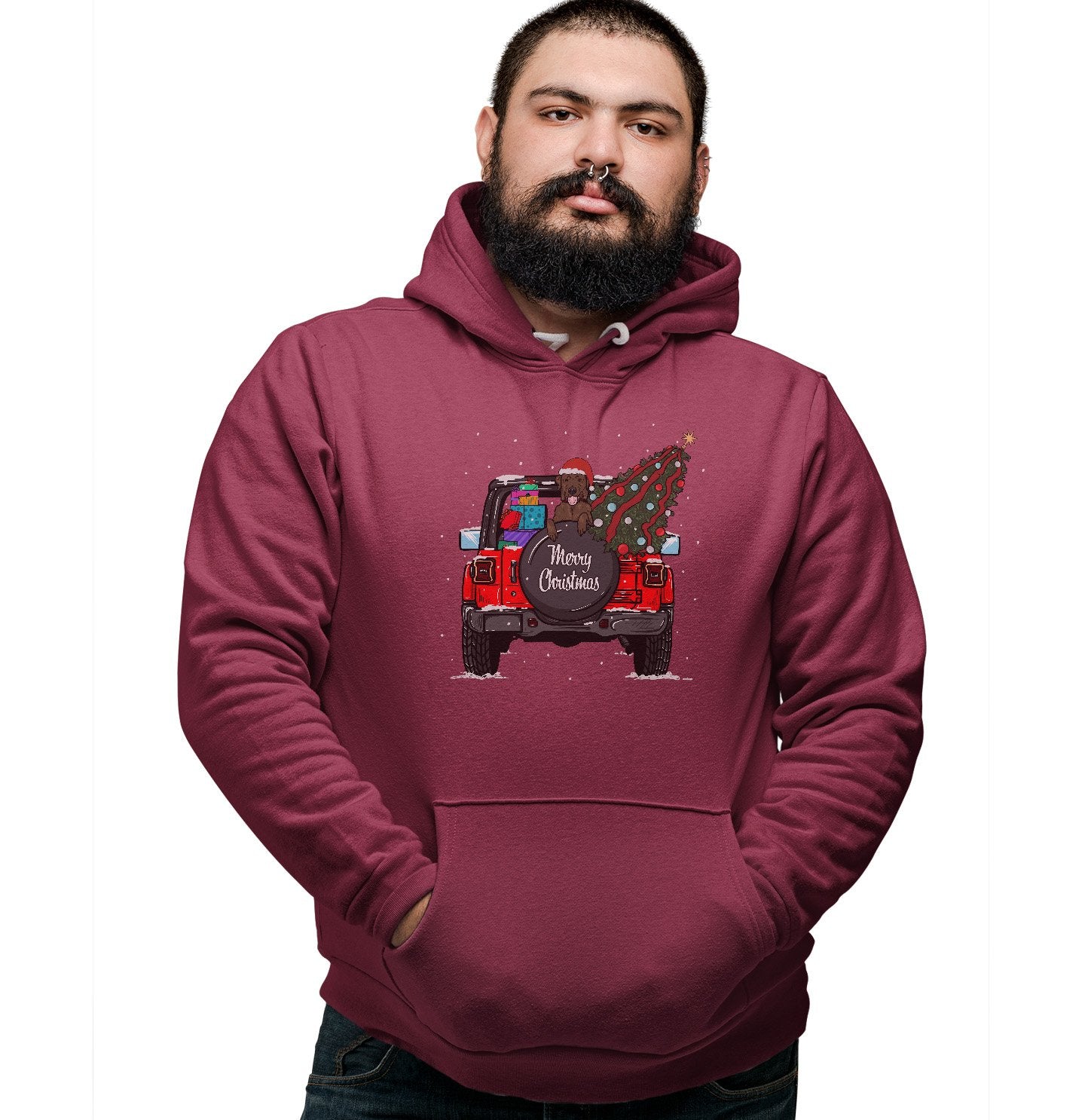 Christmas Jeep Chocolate Lab - Adult Unisex Hoodie Sweatshirt
