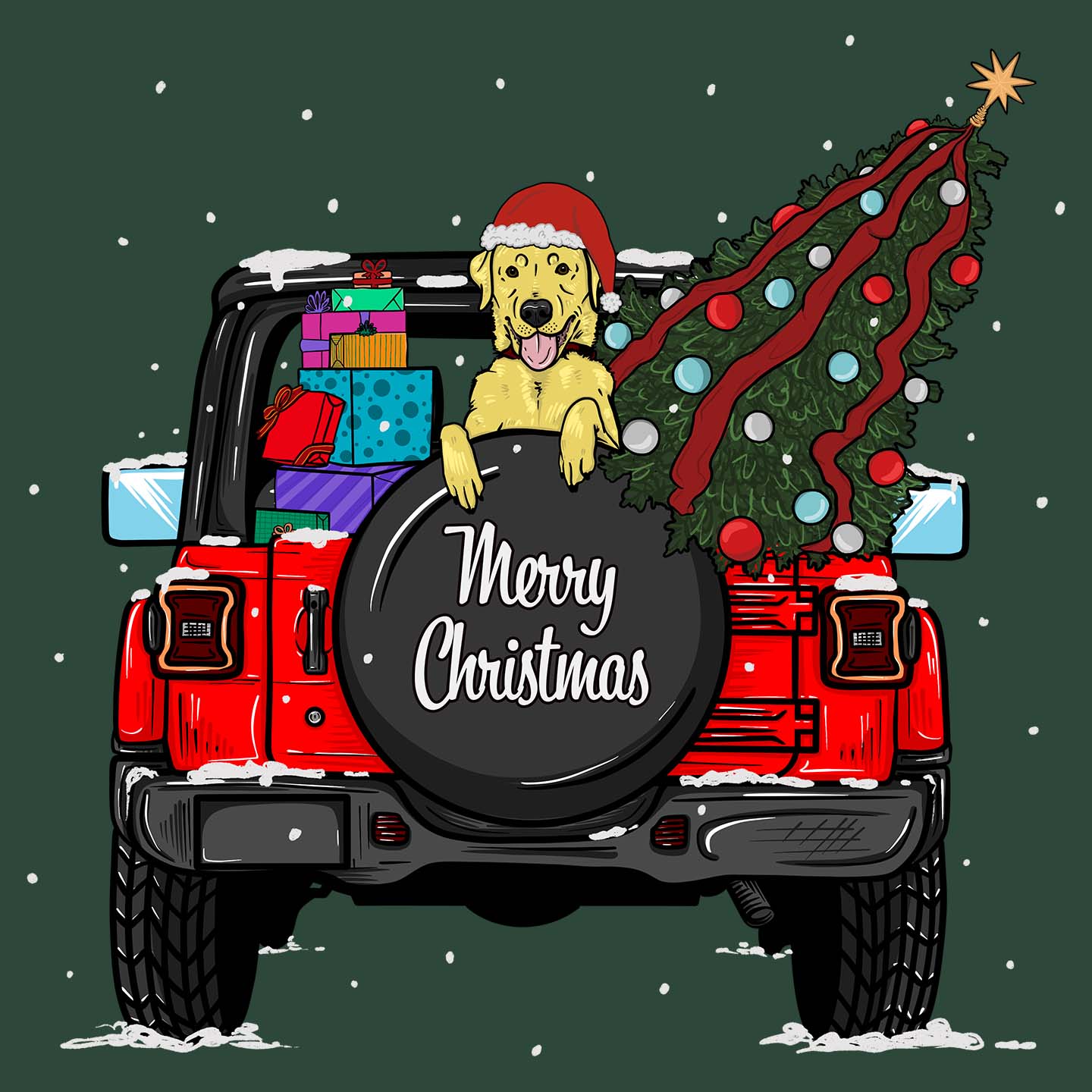 Christmas Jeep Yellow Lab - Adult Unisex T-Shirt