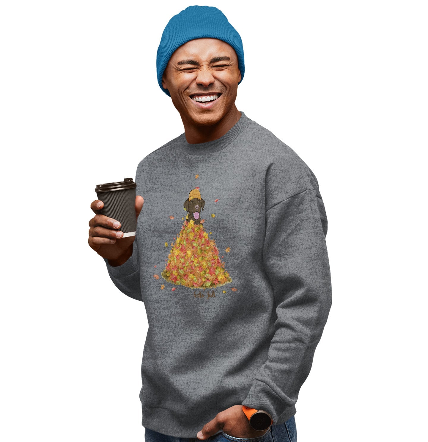Leaf Pile and Chocolate Lab - Adult Unisex Crewneck Sweatshirt