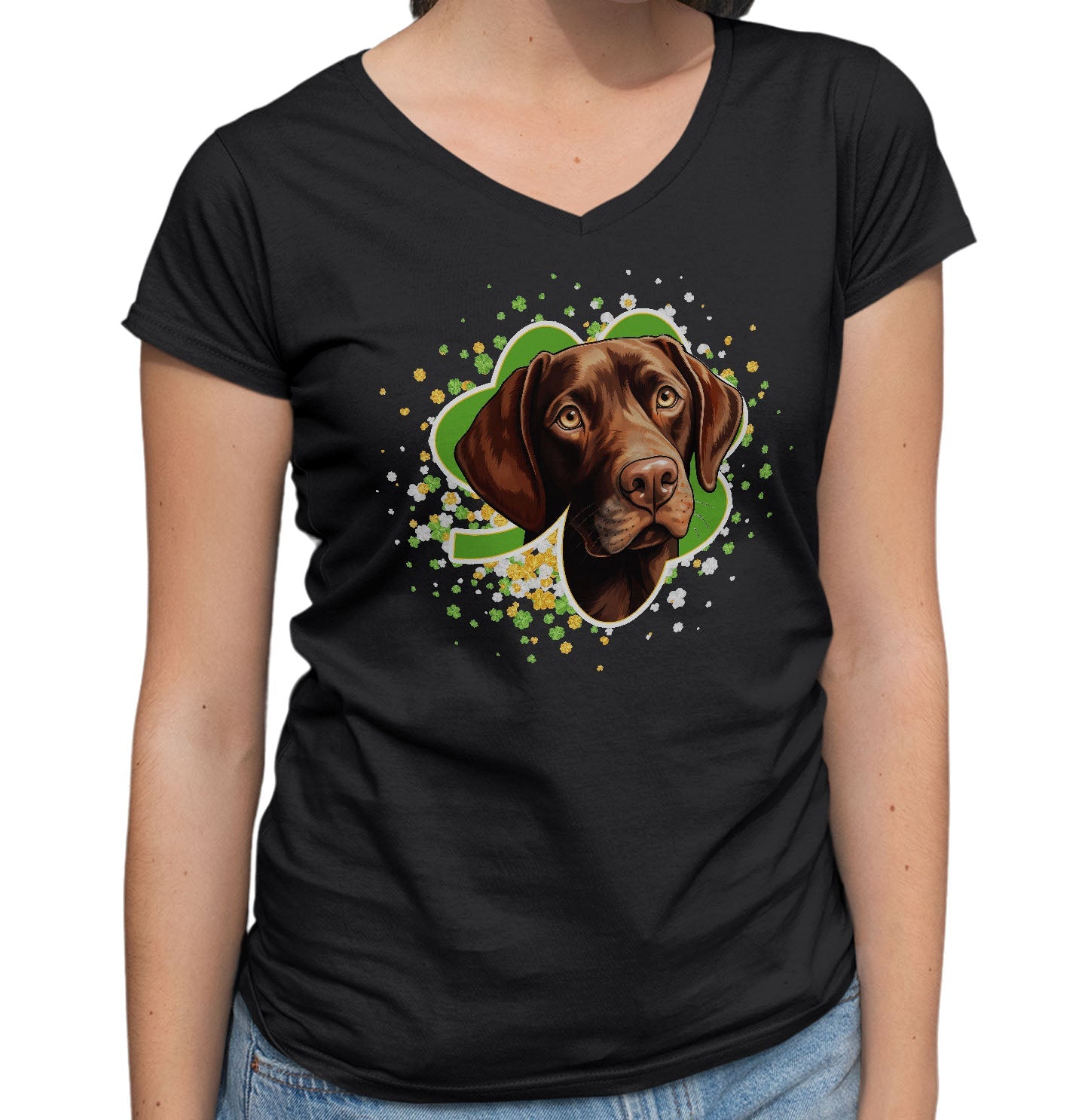 Big Clover St. Patrick's Day Labrador Retriever (Chocolate) - Women's V-Neck T-Shirt