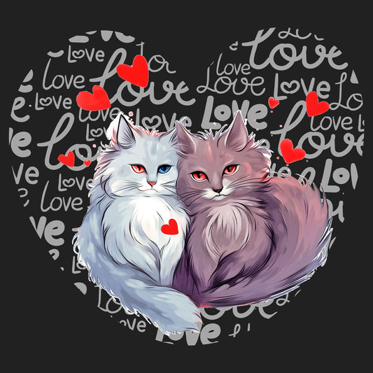 Cat Love Heart - Adult Unisex Hoodie Sweatshirt
