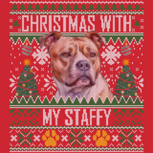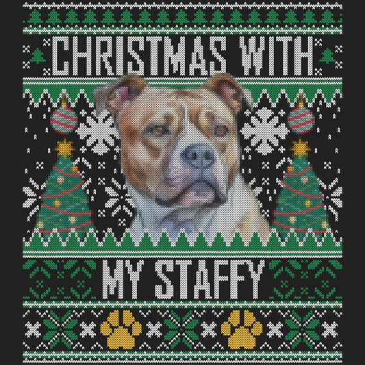 Ugly Sweater Christmas with My Staffordshire Bull Terrier - Adult Unisex Long Sleeve T-Shirt