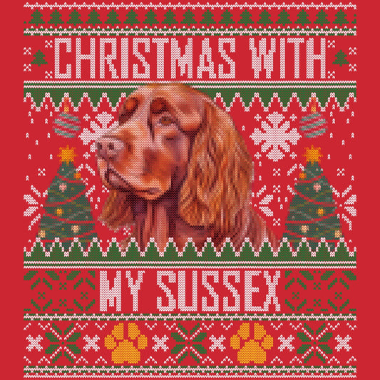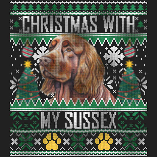 Ugly Sweater Christmas with My Sussex Spaniel - Adult Unisex Long Sleeve T-Shirt