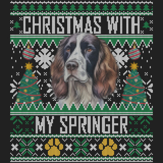 Ugly Sweater Christmas with My English Springer Spaniel - Women's V-Neck Long Sleeve T-Shirt