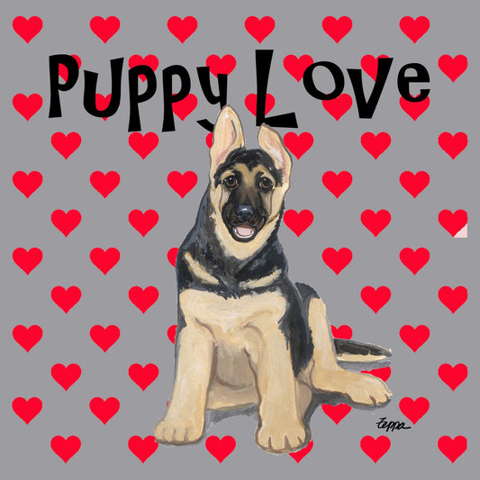 German Shepherd Puppy Love Text - Adult Unisex T-Shirt