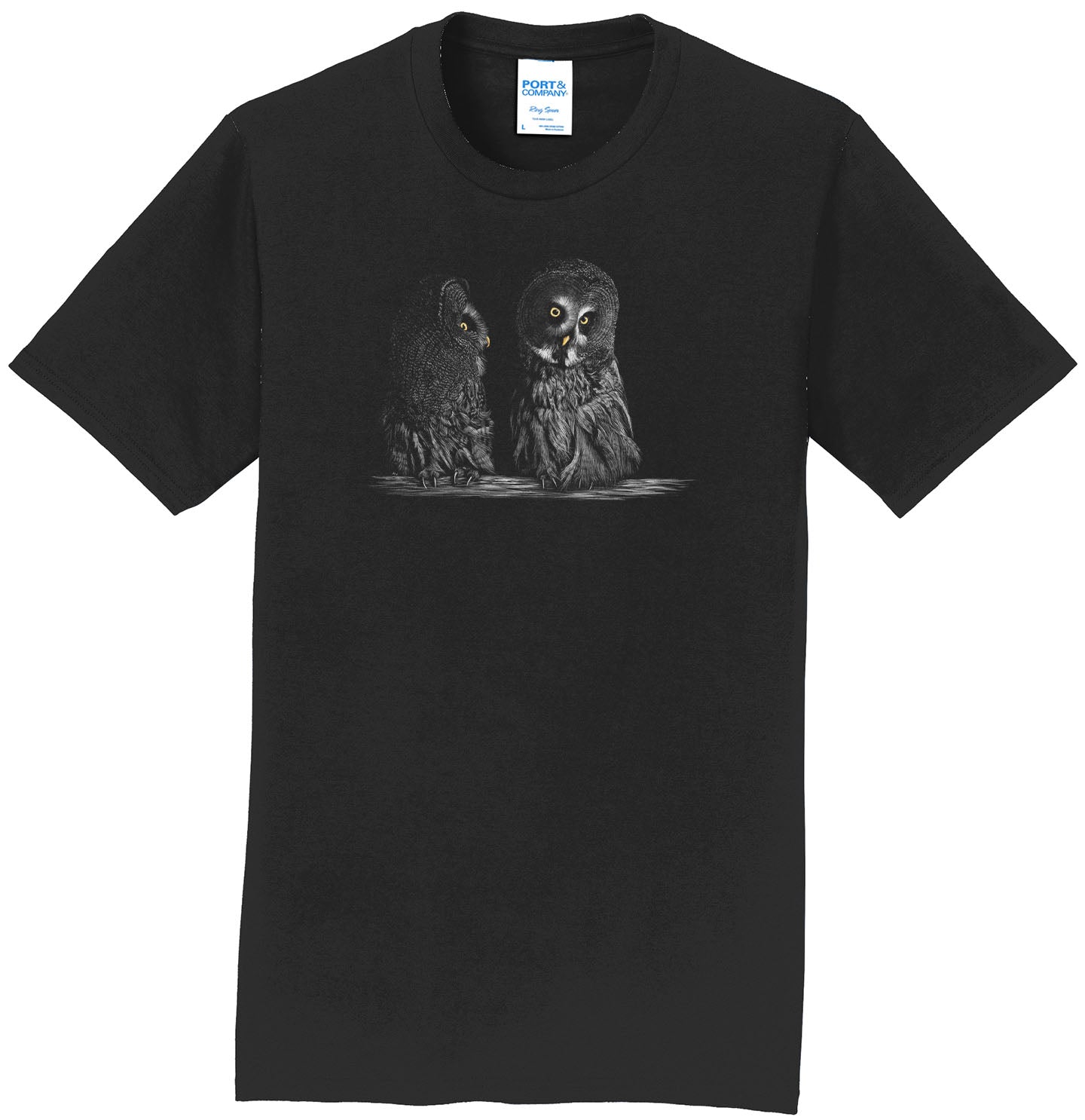 Great Grey Owls on Black - Adult Unisex T-Shirt