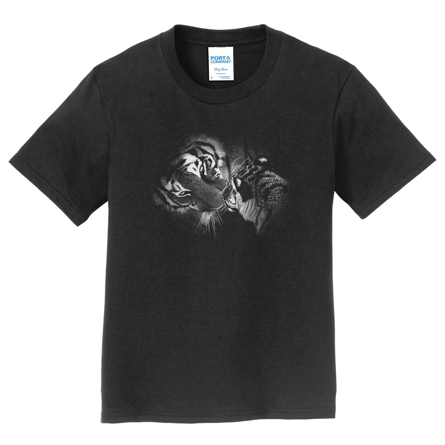 Close-up Tiger and Cub on Black - Kids' Unisex T-Shirt