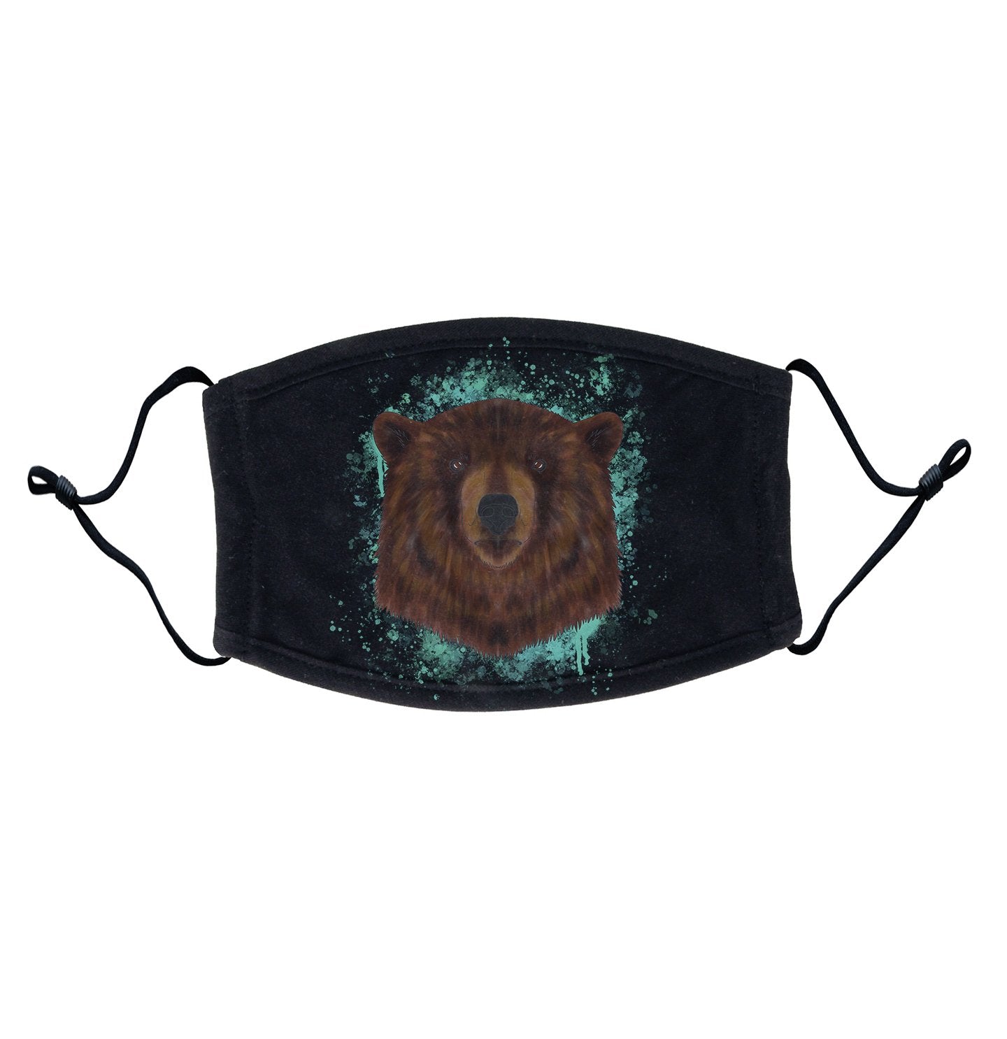 Brown Bear Blue Illustration - Adult Adjustable Face Mask