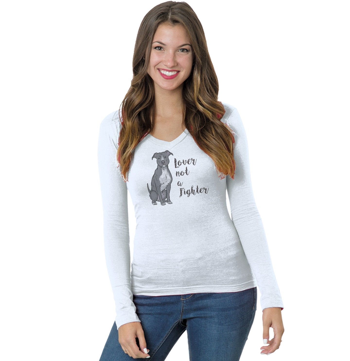 Grey Pit Bull Lover Not Fighter - Women's V-Neck Long Sleeve T-Shirt