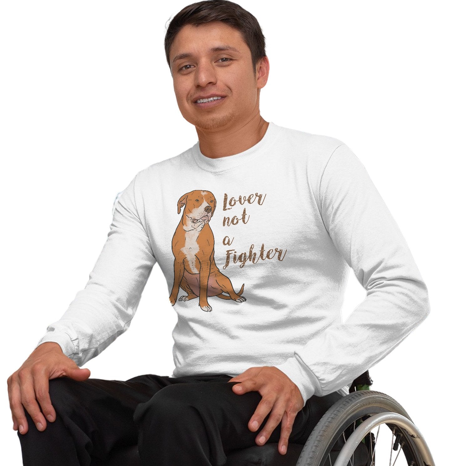 Red & White Pit Bull Lover Not Fighter - Adult Unisex Long Sleeve T-Shirt