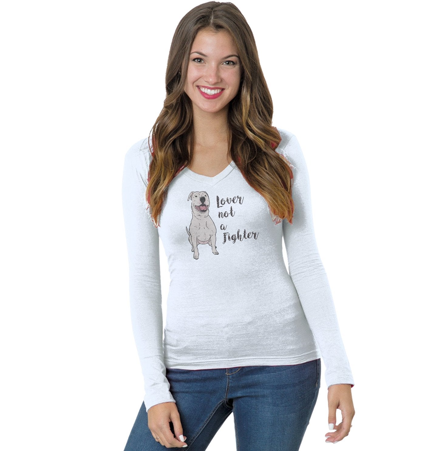 White Pit Bull Lover Not Fighter - Women's V-Neck Long Sleeve T-Shirt