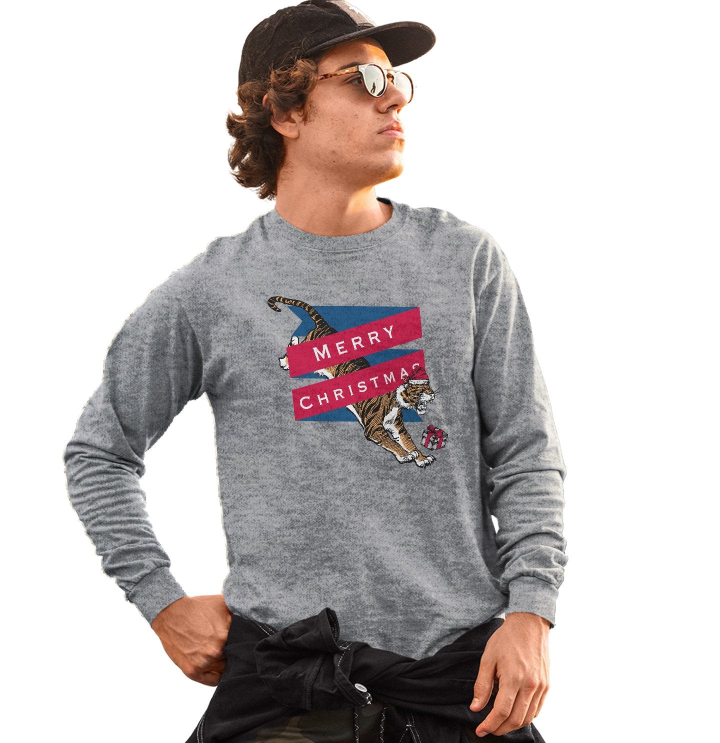 Merry Christmas Tiger - Adult Unisex Long Sleeve T-Shirt