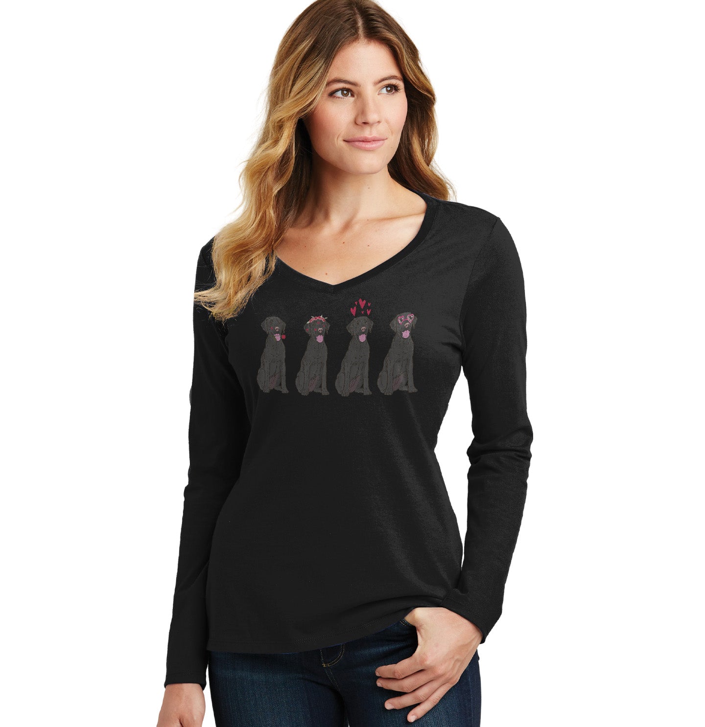 Black Lab Love Line Up - Women's V-Neck Long Sleeve T-Shirt