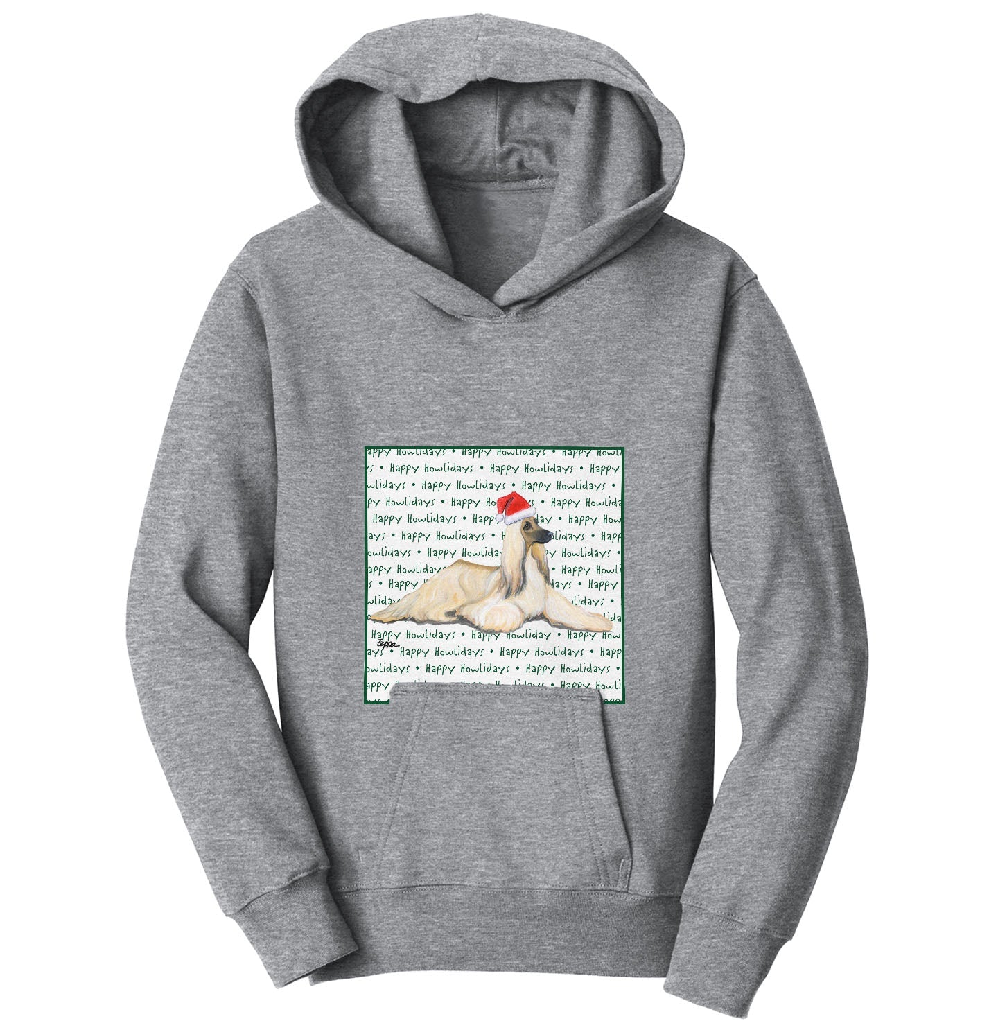 Afghan Hound Happy Howlidays Text - Kids' Unisex Hoodie Sweatshirt