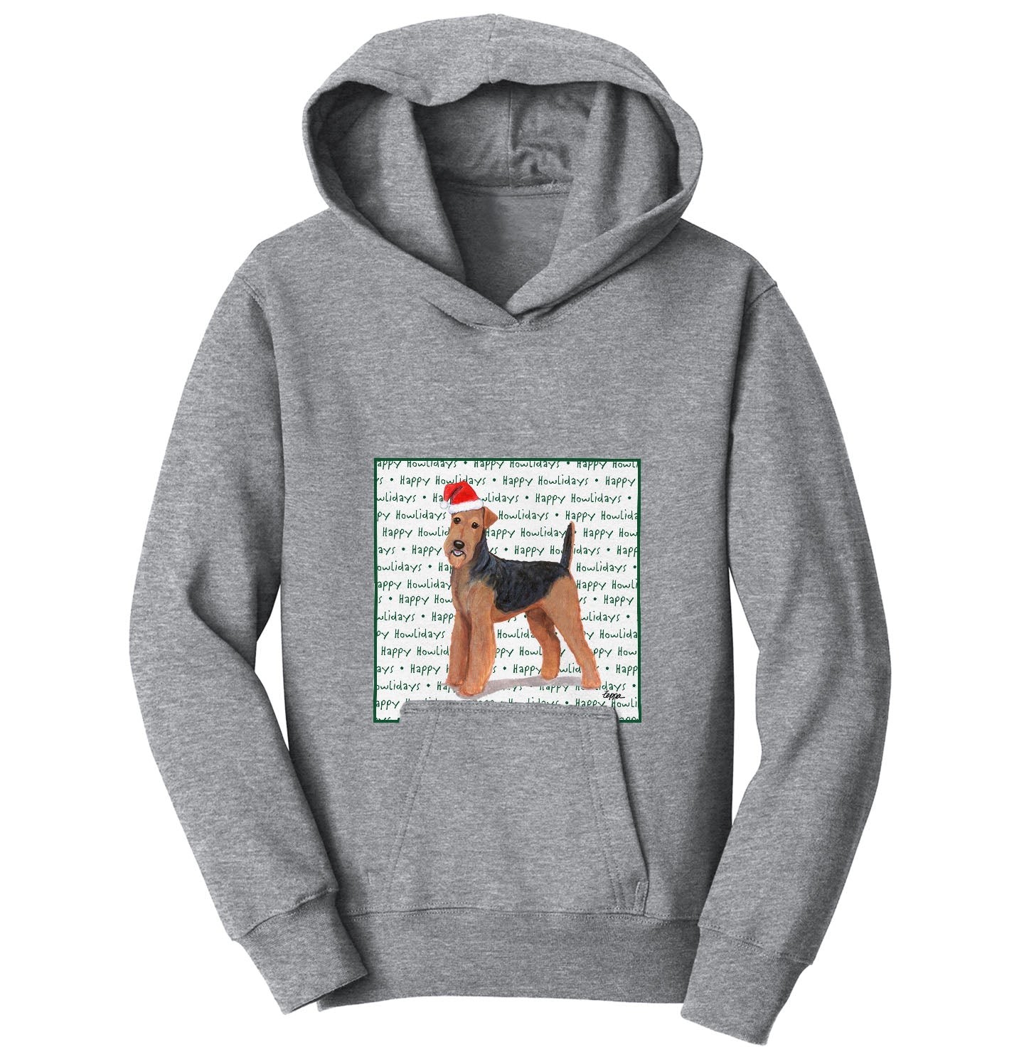 Airedale Terrier Happy Howlidays Text - Kids' Unisex Hoodie Sweatshirt