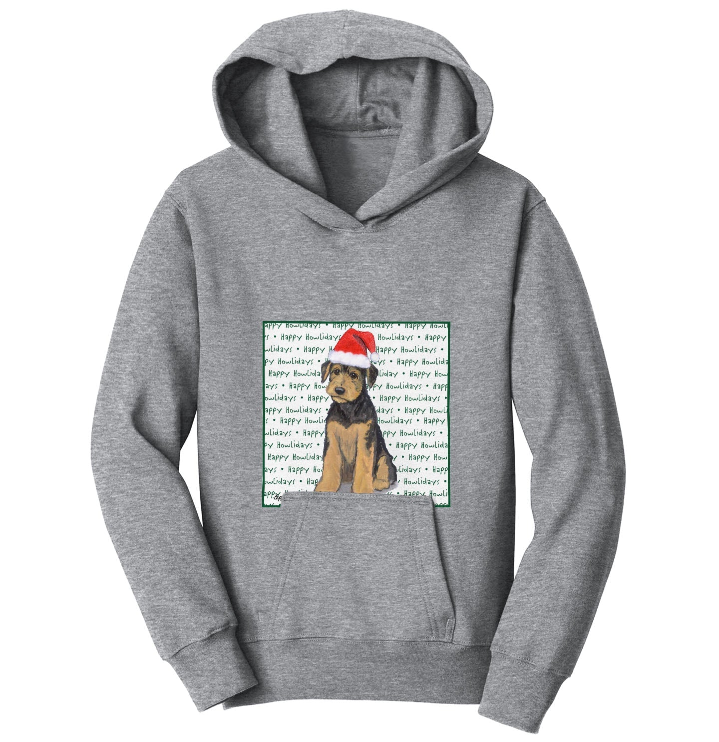 Airedale Terrier Puppy Happy Howlidays Text - Kids' Unisex Hoodie Sweatshirt