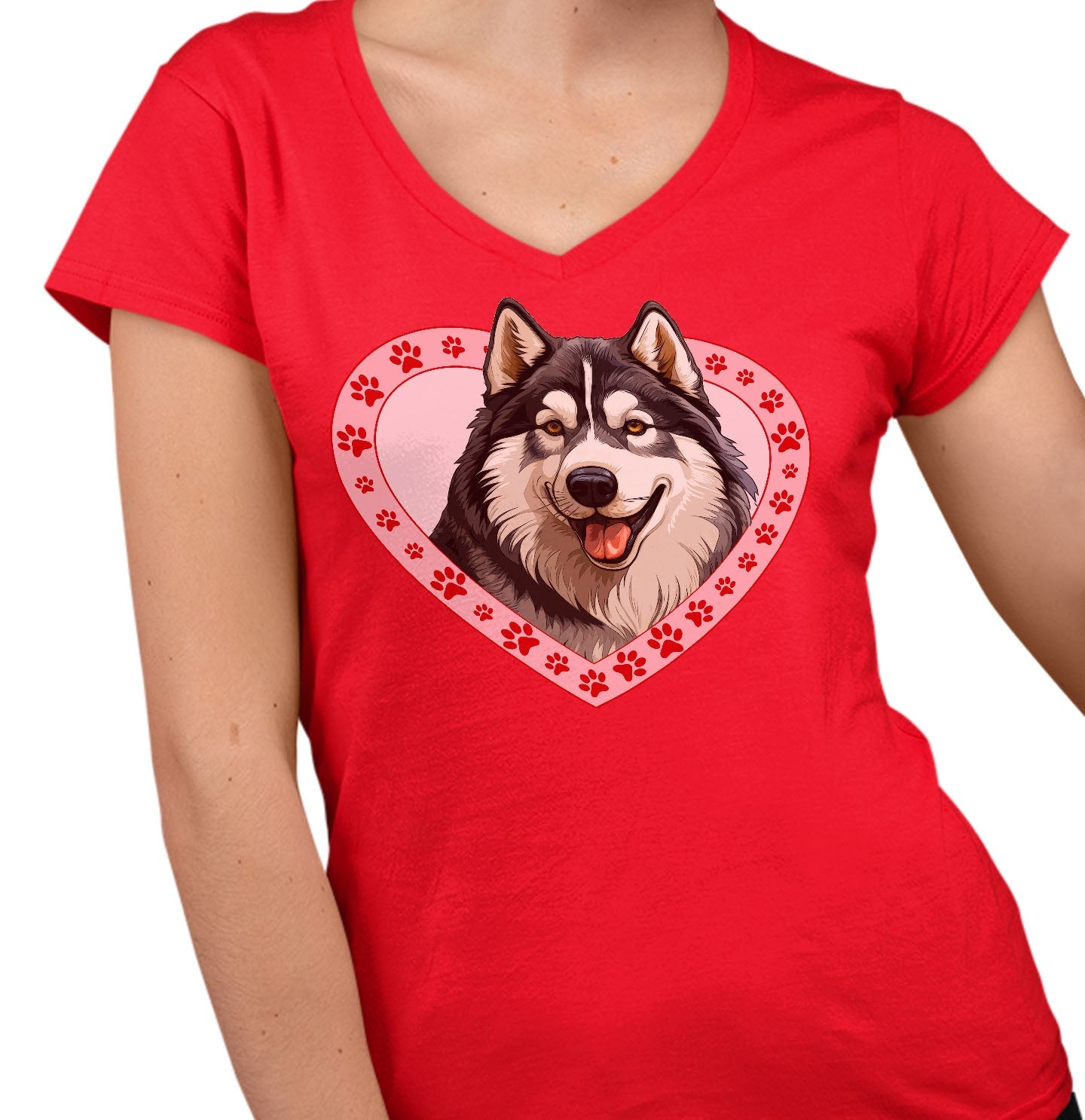 Alaskan Malamute Illustration In Heart - Women's V-Neck T-Shirt