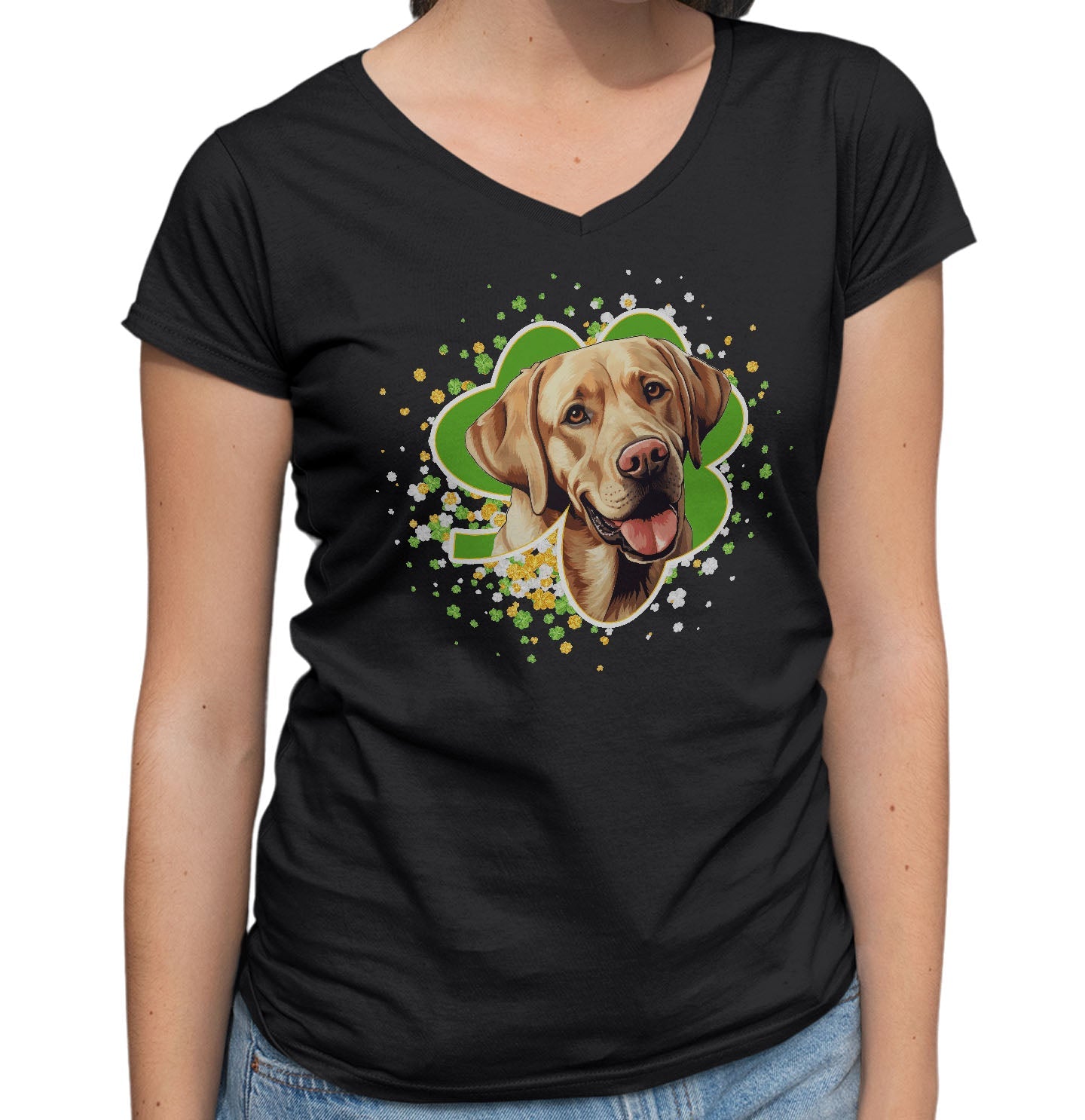 Big Clover St. Patrick's Day Labrador Retriever (Yellow) - Women's V-Neck T-Shirt